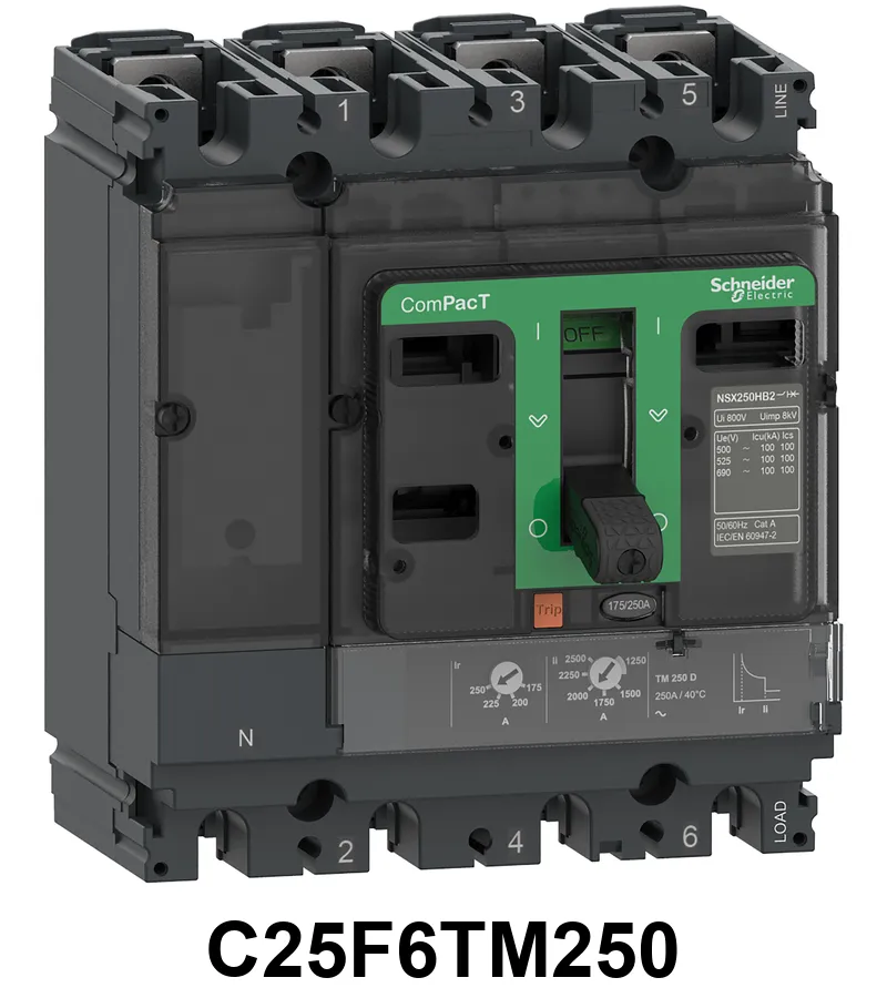 Interruptor Compact Nsx250F 36 Ka A 415 Vca Unidad De Control Tmd 250 A 4 Polos 3D Schneider